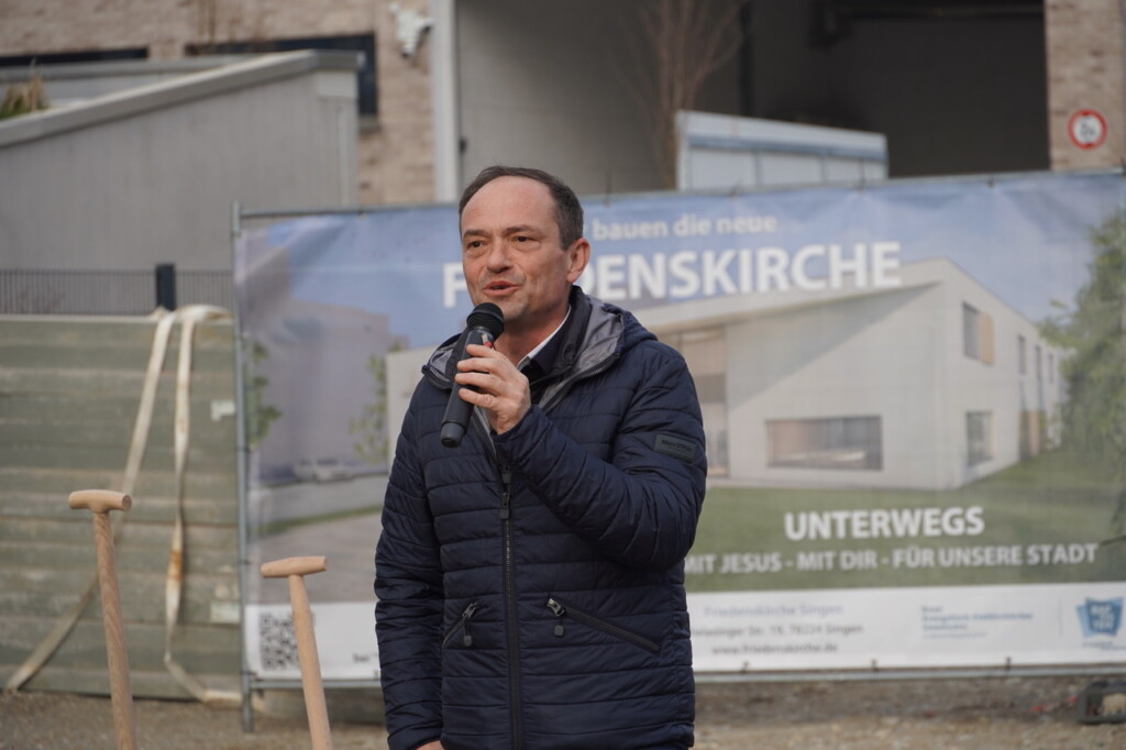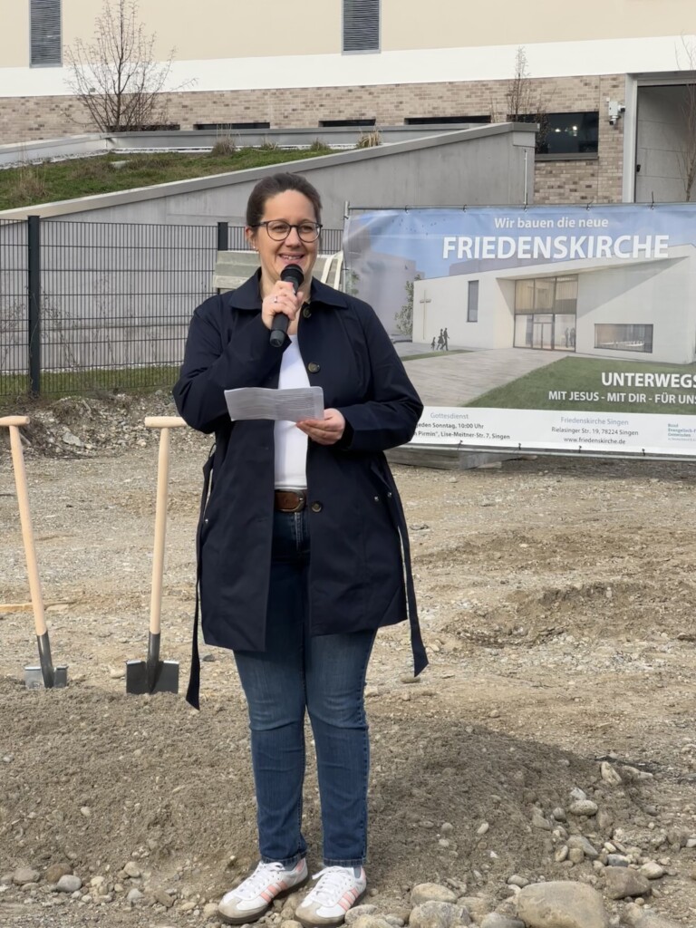 Vier Jahre, die wir auch als Kirchengemeinde dafür genutzt haben, uns wieder neu zu fragen, welche gesellschaftliche Relevanz Kirche im Allgemeinen und die Friedenskirche Singen im Besonderen hat. Nun ist es endlich soweit und wir können mit dem Bau des neuen Gemeindehauses im Herzen von Singen beginnen. Dies haben wir im Rahmen eines „offiziellen Spatenstichs“ gefeiert, wozu Vertreter der Stadt Singen, die Presse, unser Architekt, einige Fachplaner, unser Rohbauunternehmen, die angrenzende Nachbarschaft und natürlich unsere Gemeinde herzlichen eingeladen war.